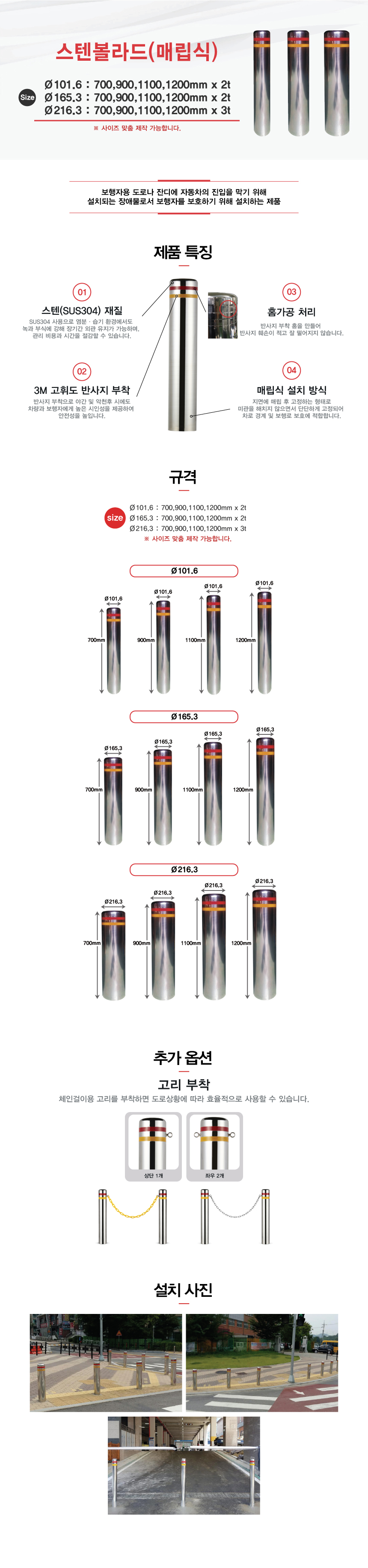 [H-10 스텐(스틸)볼라드 스텐볼라드 (특수 사이즈 주문가능)] Ø216스텐볼라드/매립
