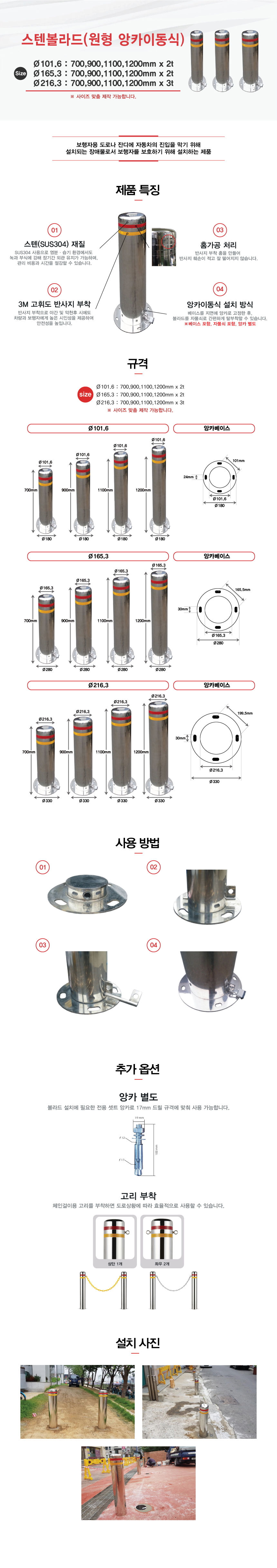 [H-10 스텐(스틸)볼라드 스텐볼라드 (특수 사이즈 주문가능)] Ø216앙카이동식/원형
