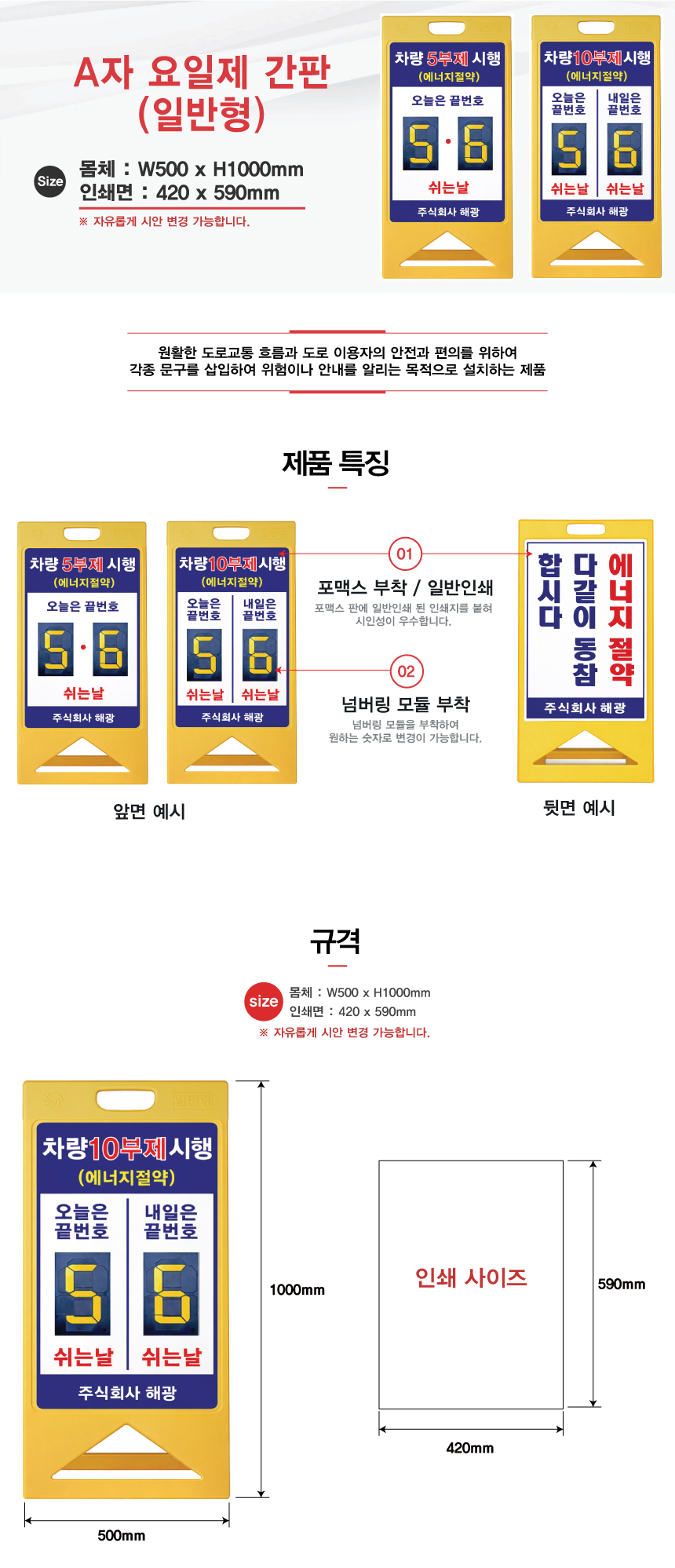 A자 요일제 간판(일반형)