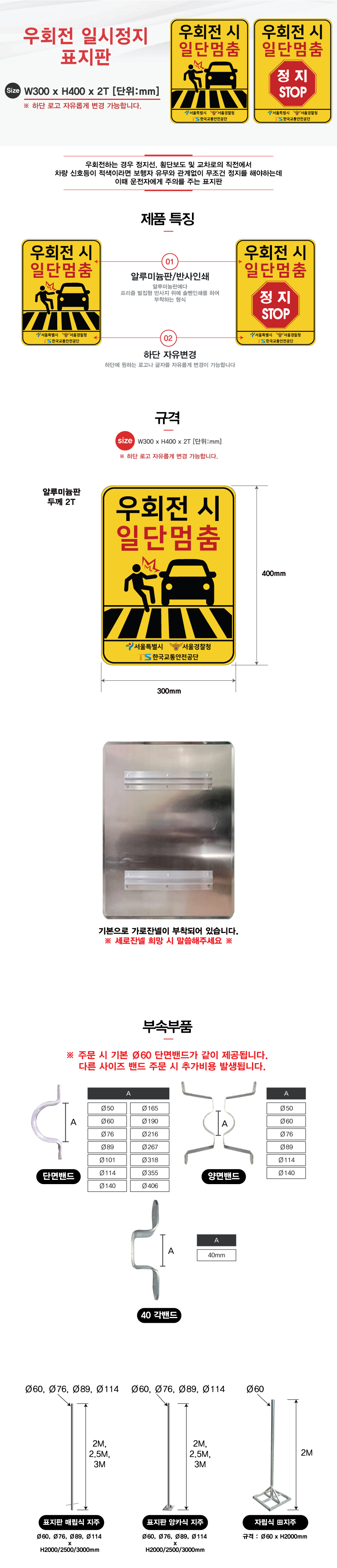 교통표지판/발광형표지판 교통안전표지판(일반)] 우회전 일시정지 표지판