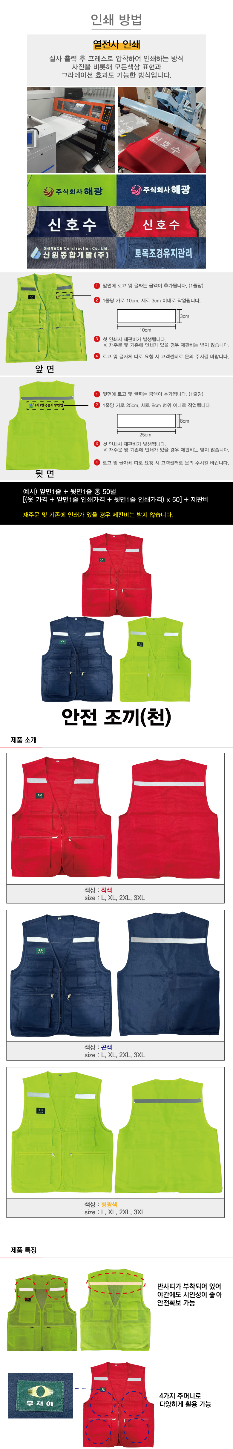 [H-55 안전조끼/작업티 안전조끼(열전사 인쇄 가능)] T/C안전조끼(천)