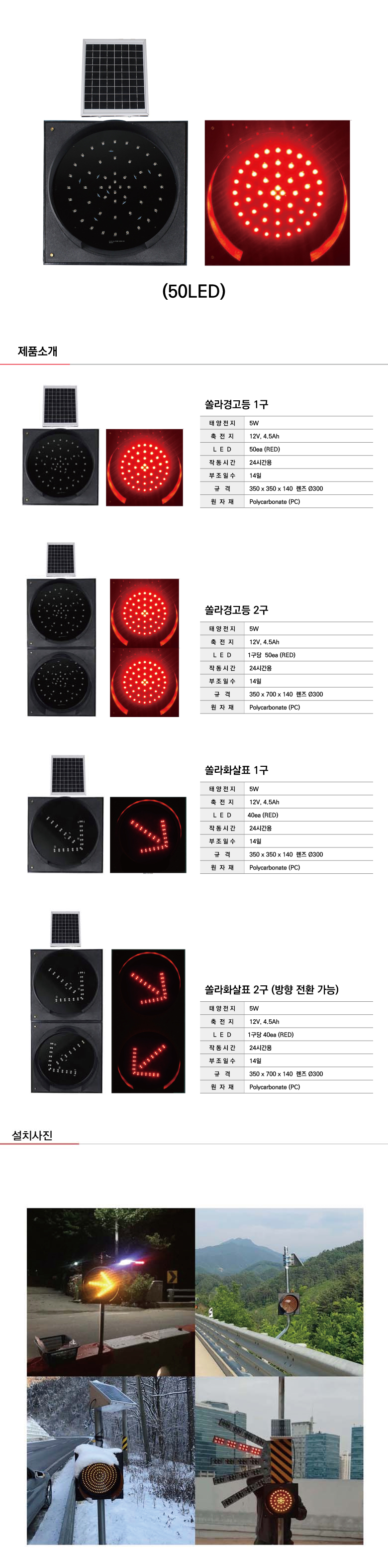 [H-24 쏠라교통표시등 경고등] 쏠라경고등1구(적색)